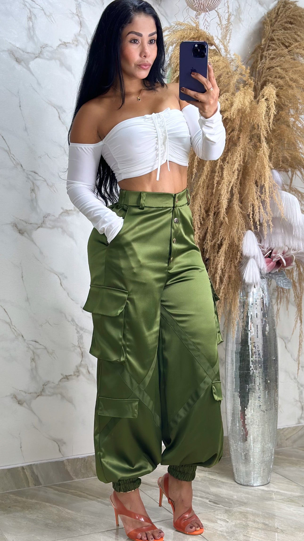 🌸🚨Pantalón de cargo satinado: Tiro alto que realza tu figura y estilo. Versátil y elegante, combina con todo y es perfecto para cualquier ocasión. ¡Luce espectacular y siente la confianza en cada paso!👖🤩🥰